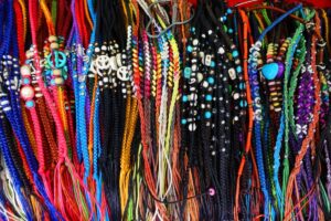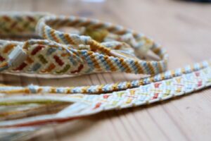 カラフルな糸で編まれたアクセサリー、ミサンガ。